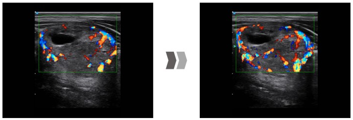 The technology recognizes and enhances the effective signals as well as reduces noise beyond boundaries. It significantly improves the tissue uniformity and S/N ratio.