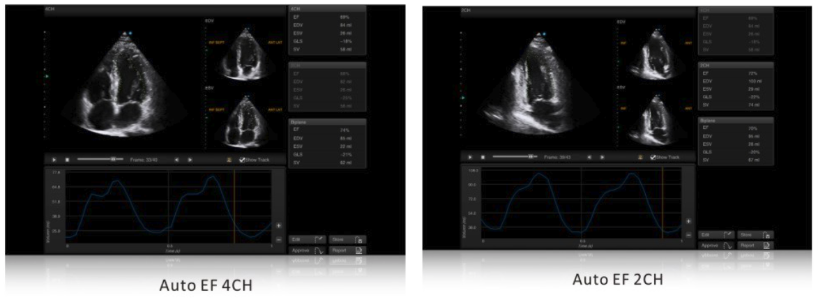 SIUI Auto EF is a fully automatic measurement tool used to measure the Left Ventricle global Ejection Fraction. It is an optional decision supporting tool for clinicians in daily cardiac function evaluations.